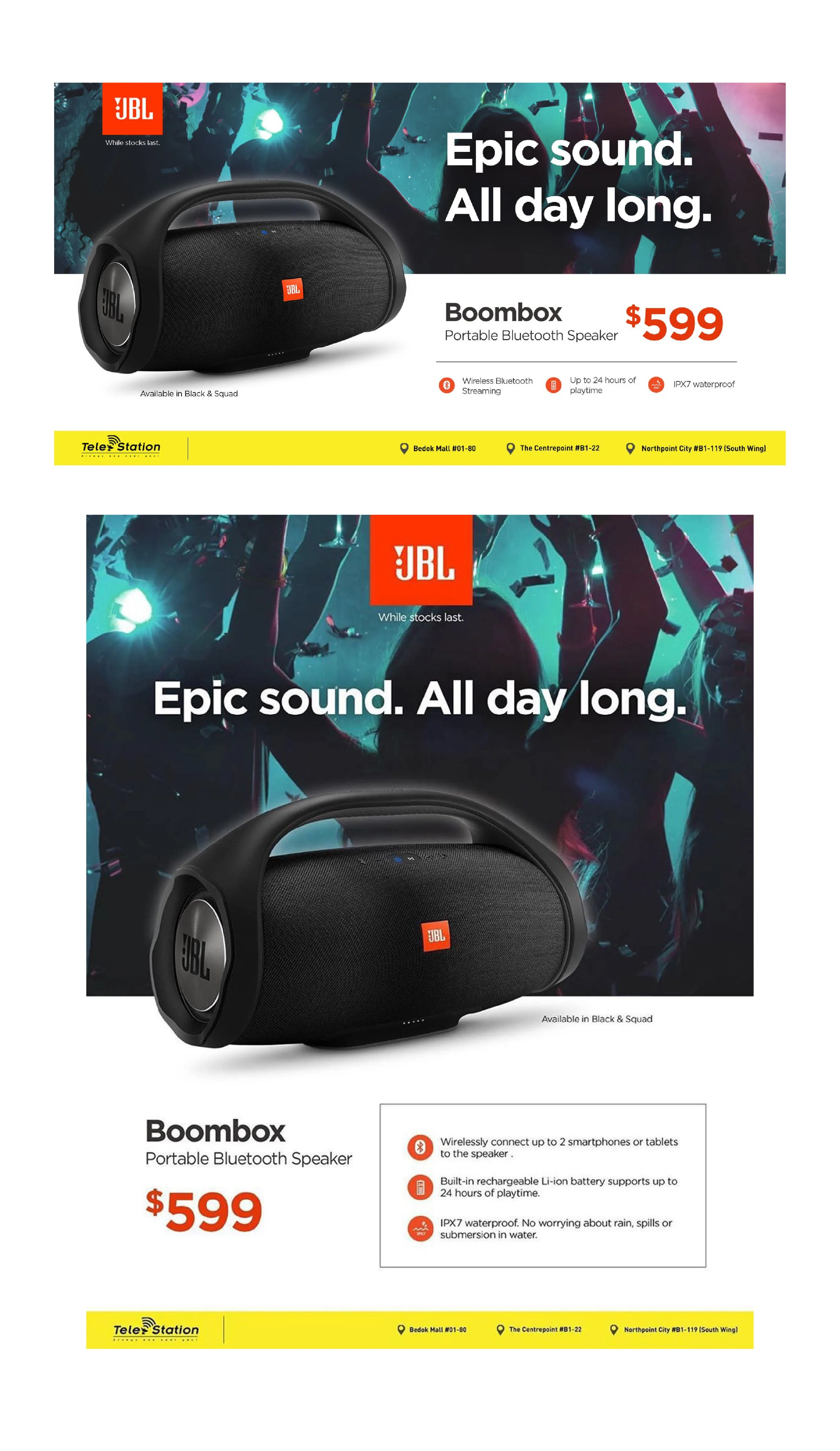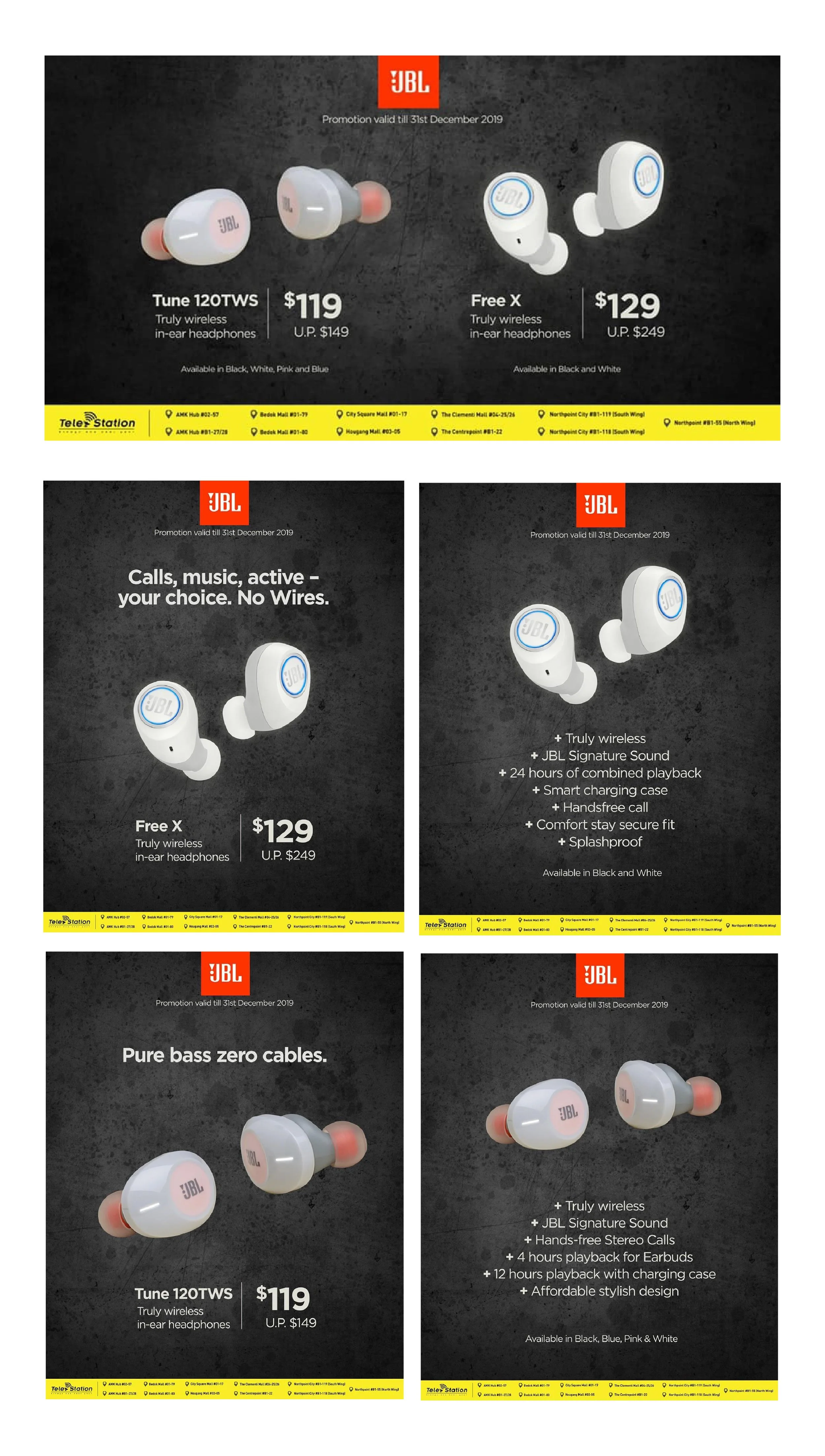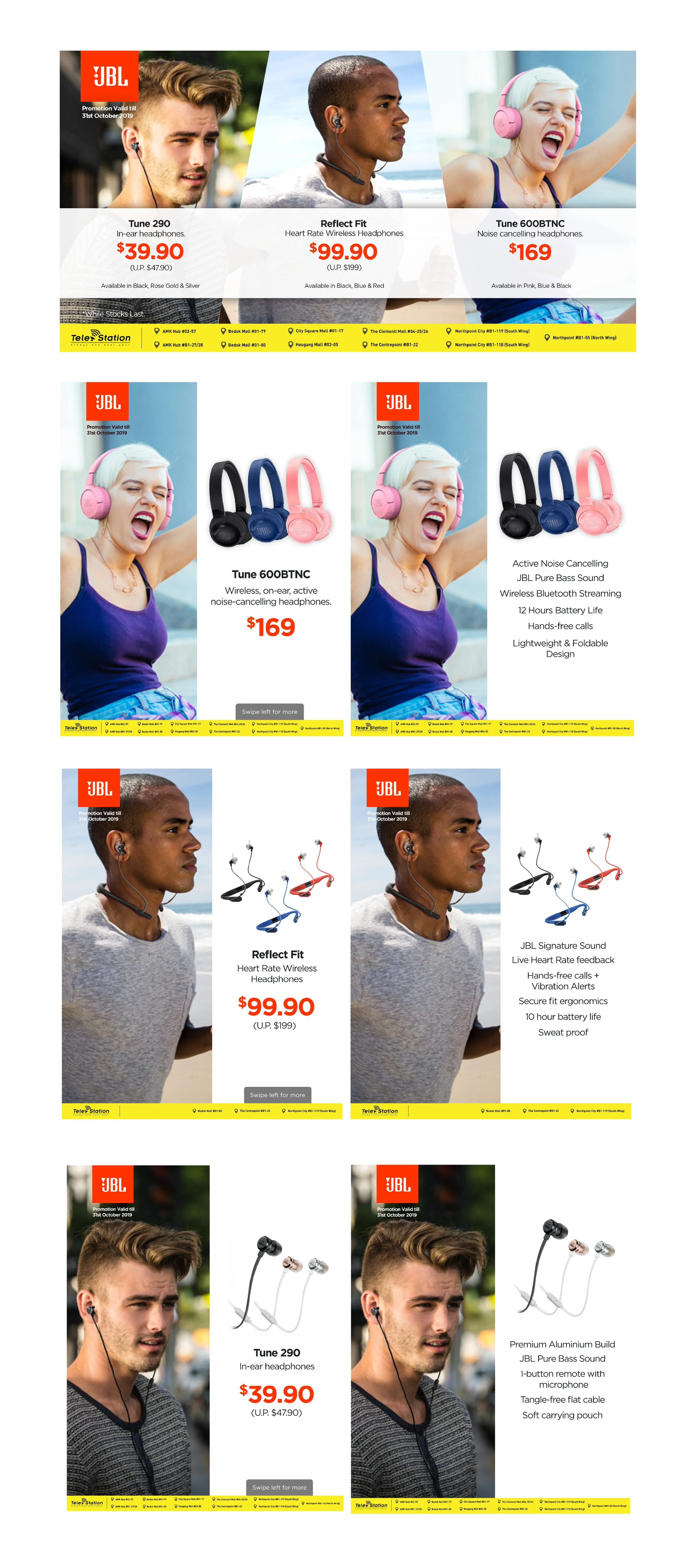 This series of promotional visuals focuses on JBL speakers and earbuds, created for social media campaigns across various digital platforms. The content was designed to capture attention quickly while effectively communicating product features, promotions, and key selling points to a broad audience.